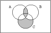 求める集合は、A ∩ B (ピンク色の分部)と、C ∩ (水色の分部) の和集合であるから、イが適当である。