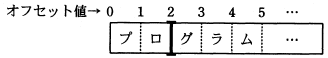 ![]() 図4 カーソルの位置(cursor の値は2) 文字の入力は,外部で与えられるクラス CharReader で行う。メソッド get は, ターミナルから1文字ずつ読み込む。CharReader には,次の制御文字が定義されている。 制御文字以外の文字が入力されたときは,カーソルの位置に文字を挿入し, カーソルを1文字分進める。 @ CharReader.MOVE_FORWARD カーソルを1文字分進める。カーソルがテキストの末尾にあるときは,無視する。 A CharReader.MOVE_BACKWARD カーソルを1文字分戻す。カーソルがテキストの先頭にあるときは,無視する。 B CharReader.DELETE カーソルの直後の1文字を削除する。カーソルがテキストの末尾にあるときは,無視する。 C CharReader.EOF エディタを終了する。 ギャップバッファの内容の表示は,外部で与えられるクラス Display で行う。 メソッド output は,GapBuffer のメソッド charAt を呼び出してギャップバッファの テキストを取得する。 〔プログラム1〕