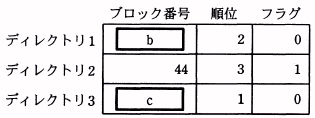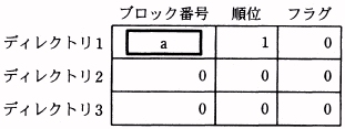 A データ部はバッファ1〜3の三つのバッファから成り,各バッファは1ブロック分の 主記憶の内容を保持できる。 B ディレクトリ部は,データ部のバッファ1〜3に対応したディレクトリ1〜3から成る。 それぞれのディレクトリは次の内容を保持する三つのフィールドから成る。 なお,データ部のバッファが未使用の場合は,対応するディレクトリの三つの フィールドすべてに0が入っている。 (イ) ブロック番号:対応するデータ部のバッファが保持する主記憶のブロック 番号 (ロ) 順位 :キャッシュ内に最も古くから存在するブロックから順に 1, 2, 3 と 番号が振られる。 (ハ) フラグ:対応するデータ部のバッファにブロックを読み込んだとき,0に初期化される。 対応するデータ部のバッファに保持されている内容が CPU の処理によって変更されると,1に変わる。