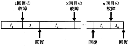 システムが時間とともに図のように故障と回復を繰り返した。このとき,RASIS の