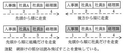 設問2 次の記述中の 共通ライブラリの社内レビューを実施したところ,組織エントリリストのクラス設計に 対して次の指摘が挙がった。 〔指摘の内容〕 組織エントリリストから組織エントリを取り出すとき,クライアントが要素番号を 指定する必要がある。全ての組織エントリを取り出すときや,特定条件を 満たす組織エントリだけを取り出したいときなど,クライアント側の実装依存が大きくなる。 図4にクライアントの走査の例を示す。