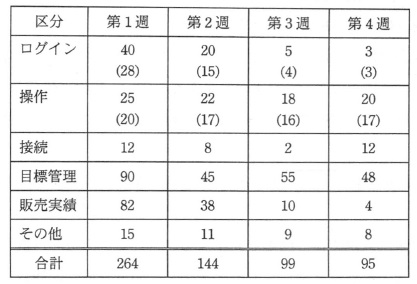 システム更新の当初は問合せ数が多かったものの,第4週の問合せ数が第1週と