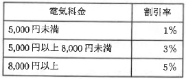 プログラム5は,割引率を求めるためのクラス DiscountTable である。メソッド map は, 引数で与えられた電気料金から割引率を求め,その値を返す。ここで, 割引率は小数で与えるものとする。例えば,1%は 0.01 である。 〔プログラム5〕