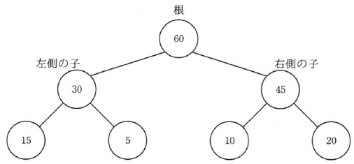 A 配列要素 heap[Ø] は,根に対応する。 B 配列要素 heap[i]( i = Ø,1,2,…)に対応する節の左側の子は配列要素 heap[2×i+1] に対応し,右側の子は配列要素 heap[2×i+2] に対応する。 子が一つの場合,左側の子として扱う。 (3) 図1のヒープの例に対応した配列 heap の内容を,図2に示す。