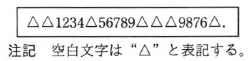 〔プログラム2の説明〕 (1) 文字列は,一つ以上の空白文字で区切られた任意の個数の数字列を含み, 最後はピリオドで終わる。最後の数字列とピリオドの間, 又は文字列の先頭に一つ以上の空白文字があってもよい。文字列の例を,図2に示す。