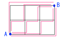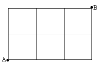 図の A 地点から,線上をたどって B 地点に到達するための最短経路は,何通りあるか。 ここで,縦1区画の長さはすべて等しく,横1区画の長さもすべて等しいものとする。