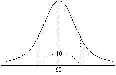 平均が 60,標準偏差が 10 の正規分布を表すグラフは、「ア」のようなグラフになる。 正規分布は、左右対称な分布で、山の高い部分が平均値となる。また、イのグラフは、 標準偏差がまちがっている。