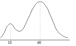 平均が 60,標準偏差が 10 の正規分布を表すグラフはどれか。