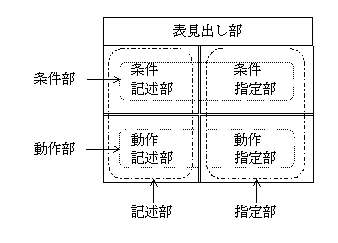 なお,決定表の各部の名称は次のとおりである。