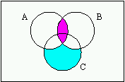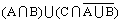 求める集合は、A ∩ B (ピンク色の分部)と、C ∩ (水色の分部) の和集合であるから、イが適当である。