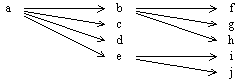 問67 データベースに関する問題項目 a の値が決まれば項目bの値が一意に定まることを,a → b で表す。 例えば,社員番号が決まれば社員名が一意に定まるという表現は,社員番号 → 社員名である。 この表記法に基づいて,図のような関係が成立している項目 a 〜 j を, 関係データベース上の三つのテーブルで定義する組合せとして,適切なものはどれか。
