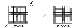 1語 n ビットからなる連続した n 語が描く図形を,図2のように対称移動した場合,