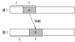 〔プログラムの説明〕 副プログラム BMOVE は,次に示すように,語1のビット列 A を語2の B の位置に移動する。 x,y,z はそれぞれビット数を表す。