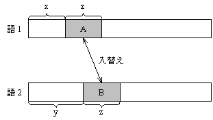 語1のビット列 A と語2のビット列 B を入れ替えるプログラム BSWAP を作成した。