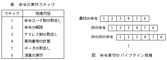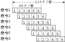 問18 パイプライン処理の実行時間あるコンピュータでは,1命令が表のステップ1 〜 6の順序で実行される。 図のパイプライン処理を利用して6命令を実行すると,何ナノ秒かかるか。 ここで,各ステップの実行時間は 10 ナノ秒とし,パイプライン処理の実行を 乱す分岐命令などはないものとする。
