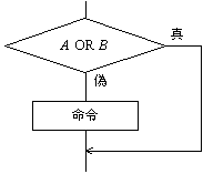 この流れ図では、AとBが共に「偽」のときは、命令が実行され、 AとBのどちらかが「真」のときは、命令が実行されない。