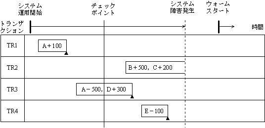 ▲は,コミットの発行を表す。 図 データベースシステムの運用状況