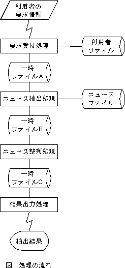 利用者の好みに合わせて国内ニュースを提供するシステムを設計する。 このシステムの概要は,次のとおりである。