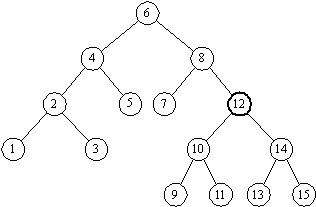 次の2分探索木から要素 12 を削除したとき,その位置に別の要素を移動するだけで 2分探索木を再構成するには,削除された要素の位置にどの要素を移動すればよいか。