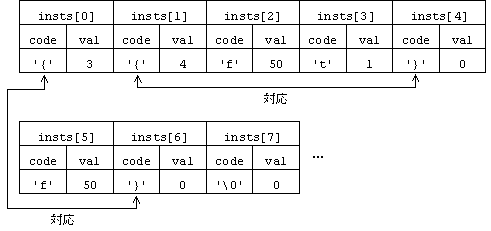 INST insts[INSTSIZE]; /* 命令を格納するための構造体配列 */