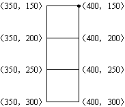 (5) 例えば,図2のように構造体配列 insts に命令を格納して, 関数 execute を実行した場合の出力は図3のとおりである。 ただし,図3中の座標値は説明のために添えたものであり,実際は出力されない。
