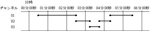 毎分 00 秒にチャンネルを検出するので,視聴データファイルには次のように分の単位に丸めて記録される。 チャンネル 03 の視聴は記録されない。