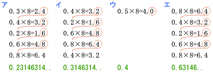 1/2 や 1/4、1/8 は2進数や8進数に変換すると有限小数となる。