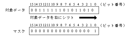 図1 プログラム1の処理方法 (1) 主プログラムは,GR1 に対象データを格納して副プログラムを呼ぶ。 (2) 対象データの第 15 ビットから第 0 ビットまでを順にマスクと照合し, 1の個数を数えて,GR0 に設定する。 (3) 副プログラムから戻るとき,汎用レジスタ GR1 〜 GR7 の内容は元に戻す。 〔プログラム1〕