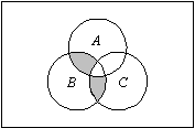 図の青色の部分は、「 A かつ B 」から C を除いた部分なので、 ( A ∩ B ∩ ) となる。