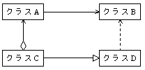 クラス図の「集約の関係」は、白抜きのひし形を使って表す。