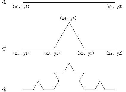図 1 コッホ曲線の生成手順