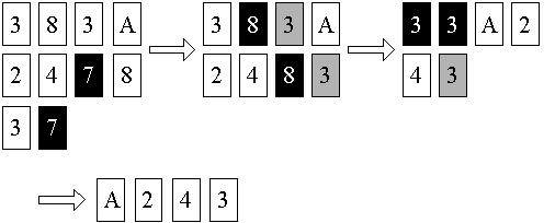 そのペア(図中の (4) (3) の操作を隣り合うカードの位が全部異なるようになるまで繰り返す。