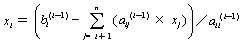 A 後退代入 @の結果から, n 元連立1次方程式の解 xi を i = n , n −1,…,1 の順に求める。