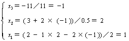 A 後退代入によって, x 3, x 2 , x 1 の値を得る。