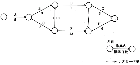 アローダイアグラムとは、下図の様に、作業の前後関係を整理して矢印で結んだ