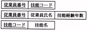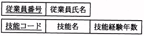 従業員(従業員番号,従業員氏名,{技能コード,技能名,技能経験年数}) ({ }は繰返しを表す)