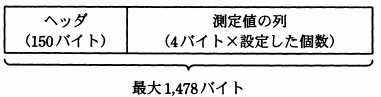 一つのパケットには,最大 また,測定値の送信に必要なネットワーク帯域wは次の式で表せる,ただし, 1パケットに格納する測定値の個数をnとする。