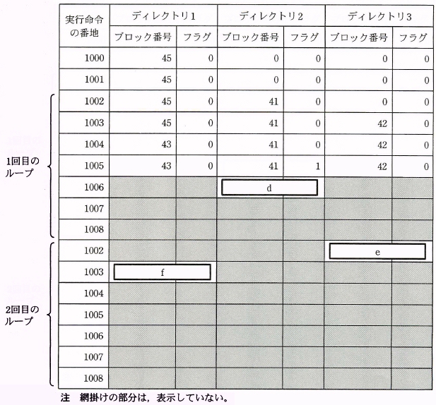 図4 1006 番地の STORE 命令を最初に実行した直後のディレクトリ部 解答群 エ 43 オ 44 カ 45