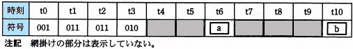 図2左の v(t0), v(t1), …, v(t10) の各測定値を,表1に基づいて符号化すると