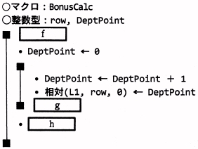 イ 相対(L1, row, 0) ← DeptPoint + 1 ウ 相対(L1, row, 0) ← DeptPoint − 1 エ 相対(L1, row,−1) ← DeptPoint オ 相対(L1, row,−1) ← DeptPoint + 1 カ 相対(L1, row,−1) ← DeptPoint − 1 キ 相対(L2, row, 0) ← DeptPoint ク 相対(L2, row, 0) ← DeptPoint + 1 ケ 相対(L2, row,−1) ← DeptPoint + 1 コ 相対(L2, row,−1) ← DeptPoint − 1