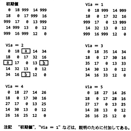 ![]() 図2 配列 Dist の内容の変化を印字した結果