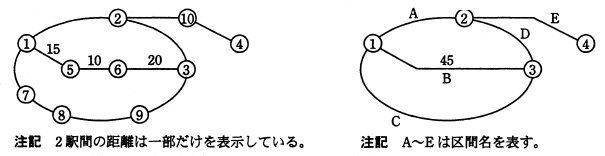 (4) 2駅 i,j 間の最短距離を求める。一般に,両駅が属する区間が異なる場合, 駅 i から駅 j へ行く経路は,