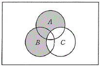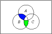 図の青色の部分は、「 A かつ B 」から C を除いた部分なので、 ( A ∩ B ∩ ) となる。