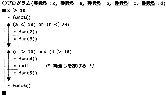 図3の制御フローグラフ中の ![]() 図2 図1にノード番号を付与したプログラムの例