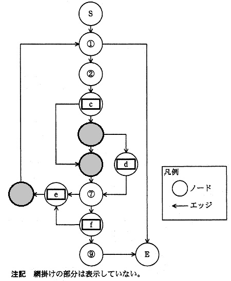 最低限必要となるテストケースの数は これに対して,制御フローグラフから経路を抽出してテストケースを作成する方法がある。 制御フロ―グラフの全てのエッジとノードを網羅する,最小の経路の数(S)は, 次の式で求められる。