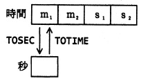 問12 CASL問12 次のアセンブラプログラムの説明及びプログラムを読んで,設問1〜3に答えよ。 〔プログラム1,2の説明〕 図1のように,主プログラムから数字列として渡された 100 分未満の時間を数値の秒に 変換する副プログラム TOSEC と,その逆変換を行う副プログラム TOTIME である。