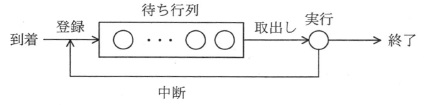 なお,プロセスの登録,取出しと中断の処理,及び残余処理時間の比較処理に 掛かる時間は考えないものとする。