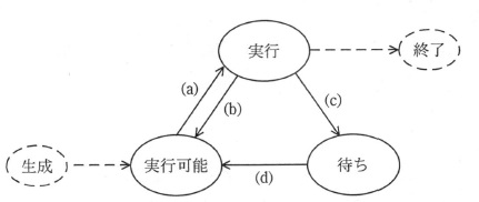 考える。プロセスの状態の遷移を図3に示す。図3において,(a)〜(d) の矢印は