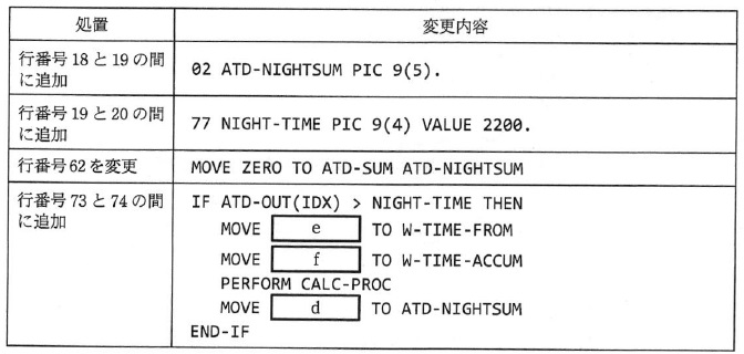 e,f に関する解答群 エ ATD-SUM オ NIGHT-TIME