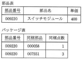 d に関する解答群 e に関する解答群 ウ 部品表と回収表 エ 部品表と出荷表とパッケージ表 オ 部品表とパッケージ表と回収表